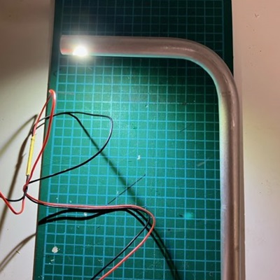 曲げた先にLEDを取り付けるところまでやったので、ついでに載せます。
