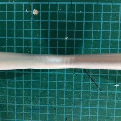 また、触ると、前後に細かいシワができていました。でもまぁこの程度ならヤスリがけすればなくなるかな。元々、塗装するつもりなのでヤスリがけはしますし。