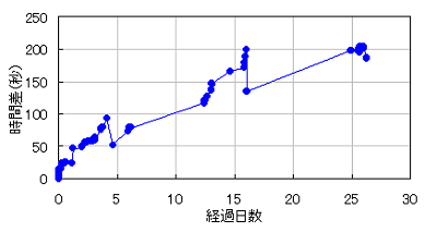 このままの時刻差が継続する場合、1年で46分くらいずれる(早くなる)ことになりますね。